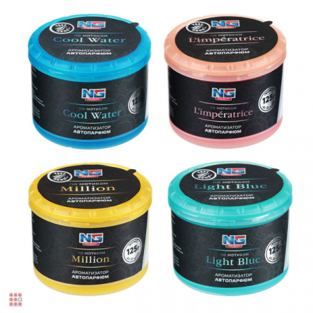 Автопарфюм от NEW GALAXY - это ароматизатор для автомобилей. Упакован в круглую пластиковую баночку. Ароматизатор ставят в подстаканник или другое удобное место. Гелевый - не проливается. Объем 125 г - хватает на 30 дней. Ароматы по мотивам Million, Light Blue, L`imperatrice, Cool Water.