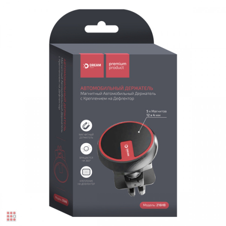 Автомобильный магнитный держатель для телефона в воздуховод - утонченный дизайн впишется в интерьер любого автомобиля, фиксация на воздуховод позволяет быстро снять и поставить аксессуар. Широкие диапазоны регулировок помогут подобрать любое удобное положение для мобильного устройства.