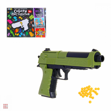 Набор для творчества сюрприз "Собери пистолетик" ХОББИХИТ – это конструктор, состоящий из пластиковых деталей, которые легко собираются без клея и специальных инструментов. В наборе есть подробная инструкция по сборке модели, которая имеет подвижные части. Игрушка развивает моторику и навыки конструирования. Состоит из 43 деталей. Пульки уже в комплекте. Для детей от 5 лет.