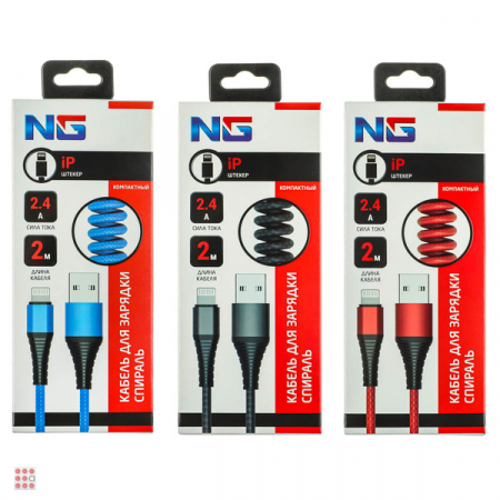 Кабель для зарядки NG «Спираль» со штекером iP и силой тока 2,4 А предназначен для зарядки устройств с соответствующим типом разъема. Поддерживает быструю зарядку. Компактный провод длиной 2 м спирального типа имеет мощную качественную оплетку, устойчивую к перегибам, растрескиванию и заломам. Может использоваться для передачи данных с мобильных устройств на ПК или ноутбук, так как поддерживает функцию синхронизации с компьютером. 3 цвета в ассортименте