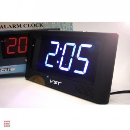 Настольные электронные сетевые часы-будильник. Цвет индикации синий