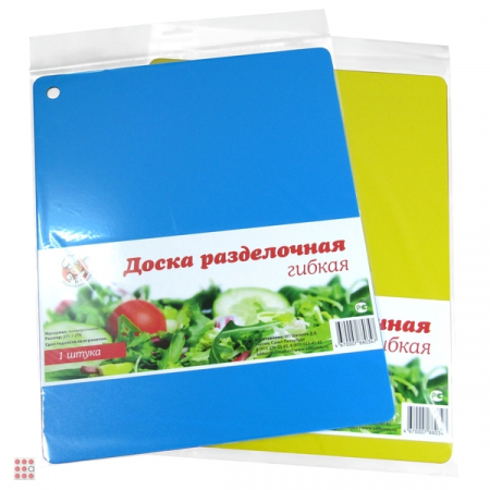 Разделочная доска – это что-то похожее на кулинарный холст, без нее трудно представить себе приготовление пищи, а пользуются досками все без исключения: от профессиональных поваров до новичков-самоучек. Ведь резать пищу на столе не годится, а использовать для этого остальную посуду просто смешно. Современная гибкая доска из пластика, стильная и эргономичная. Доски имеют большую рабочую поверхность. В отличие от модных стеклянных кухонных досок, гибкие доски продлевают жизнь дорогим ножам. Твердое лезвие стального или керамического ножа в процессе нарезки не «сталкивается» c твердой (стеклянной) поверхностью, а мягко проваливается в пористую и безопасную структуру пластичной доски. Кроме того доски легко моются и не впитывают влагу. Гибкие кухонные доски идеальны для нарезки и отбивания продуктов. Защищают поверхность стола. Гибкость досок позволяет без труда переместить нарезанные продукты в тарелку. Размер доски составляет 27*35*0,1 см. На данных гибких досках можно использовать нож любого материала. Нарезав продукт, Вы можете согнуть доску и с легкостью пересыпать содержимое в тарелку, кастрюлю и т.д.