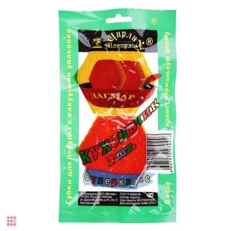 Губка для посуды 2 шт, Кухоньчик "Супер класс"