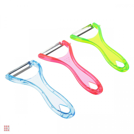 Лезвие надолго сохраняет остроту и не требует частой заточки. Главное преимущество овощечистки — универсальность. Инструмент подходит для работы с любыми видами фруктов и овощей круглой и овальной формы. Эргономичная ручка обеспечивает удобное использование аксессуара.