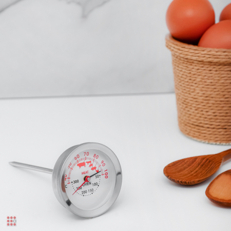 Для того чтобы правильно приготовить блюдо, нужно знать при какой температуре оно готовится. Решением станет термометр VETTA для духовой печи. Шкала показывает от 0 до 300 градусов Цельсия. Выполнен термометр из нержавеющей стали. Для удобного расположения в духовке есть специальное приспособление. Прибор имеет 2 шкалы: для измерения температуры мяса и в духовой печи.