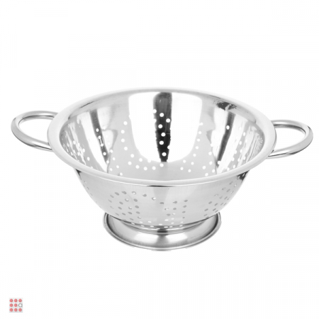 Дуршлаг диаметром 24 см из нержавеющей стали на ножке, с двумя "С" образными ручками.