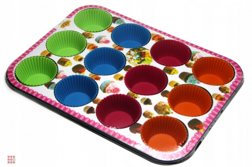 Прямоугольная форма для выпечки кексов изготовлена из высококачественного силикона на металлическом каркасе. Форма содержит 12 круглых ячеек для кексов.