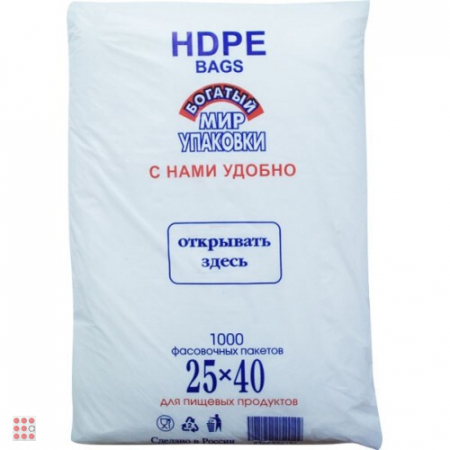 Пакет фасовочный из ПНД 25х40 см, 1000 шт