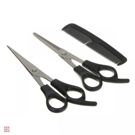 Набор парикмахерских ножниц включает в себя филировочные ножницы, ножницы для стрижки и расческу. Такие ножницы отлично подойдут как ученику, так и начинающему мастеру. Легко лежат в руке, обладают хорошей эргономикой.