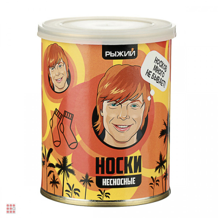 Носки в консервной банке «Рыжий» — это оригинальный подарок для мужчины по любому поводу. Оранжевые носки, герметично упакованные в банку, станут той самой яркой деталью, которая обратит на себя внимание и дополнит повседневный или классический образ беззаботным акцентом. Носки выполнены из 100% хлопка, поэтому комфортны в использовании. Аксессуар подойдет на размер ноги от 41 до 43.