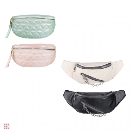 Поясная сумка ЮL - ее берут на прогулки, в походы по магазинам. В сумке удобно носить телефон, кошелек, небольшую косметичку. Удобный размер: 24 х 15 см - не мешает и вмещает необходимое. Материал - полиуретан: не промокает даже в сырую погоду, служит долго. На выбор 2 дизайна сумки - с декоративной цепочкой и без нее. Одно основное отделение на молнии без дополнительных карманов.