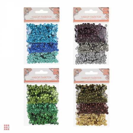 Набор пайеток для творчества 6мм, 3x10гр, пластик, 4 цвета