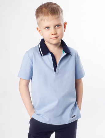 Футболка-Поло для мальчиков голубого цвета с классической горловиной и контрастным воротником на пуговицах выполнени из мягкого хлопкового трикотажа пике. Приятный на ощупь материал из отборных волокон, хорошо пропускает воздух, поэтому в модели будет комфортно в течение всего дня. Воротник и манжеты связаны из хлопковых нитей. Наличие эластана в составе изделия способствует эластичности и меньшей сминаемости. Спереди – вышивка в морской тематике, внизу металлический логотип бренда.
