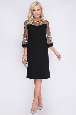 Платье А-образного силуэта из трикотажного полотна джерси.Кокетка и рукава из сетки с вышивкой.