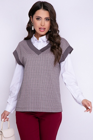 Жилет из трикотажного полотна в гусиную лапку с контрастной отделкой.