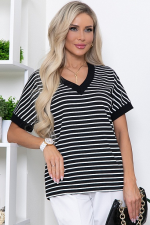 Джемпер с V-вырезом горловины из трикотажного полотна рибана в полоску(мелкая лапша производство Турция) свободного силуэта.Горловина и манжеты оформлены хлопковой,трикотажной рибаной(производство Турция)