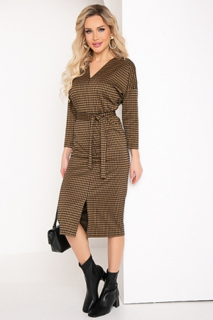 Платье свободного силуэта с V-вырезом из трикотажного полотна.