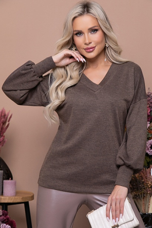 * Джемпер свободного силуэта с V-вырезом горловины из трикотажного полотна.