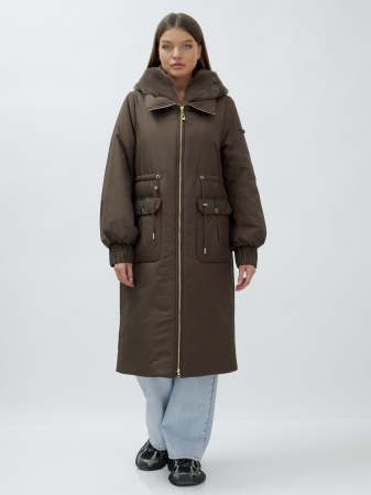 - Съемный капюшон на молнии: Практичное решение для изменения образа и защиты от непогоды. Капюшон украшен несъемным натуральным мехом норки, добавляя нотку роскоши.