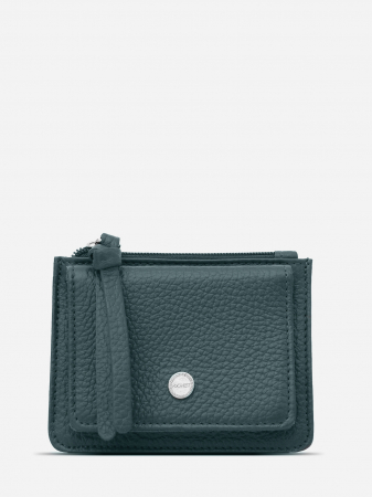 Компактный кожаный кошелек, закрывается на молнию/кнопку.