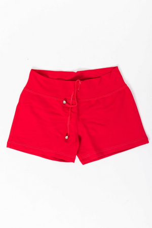 Женские шорты выполнены из футер петли ярких расцветок. Силуэт облегающий, пояс широкий со шнурком. Без карманов.