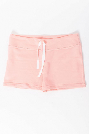 Женские шорты выполнены из футер петли ярких расцветок. Силуэт облегающий, пояс широкий со шнурком. Без карманов.