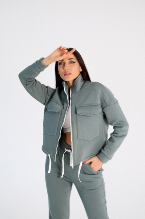 Тёплая, модная женская толстовка выполнена из полотна с начёсом (футер трёхнитка). Воротник-стойка, длинные рукава заканчиваются манжетами из основного полотна, на левом рукаве размещена вышивка. Толстовка застёгивается на молнию, спереди в верхней части размещены карманы с клапанами. Такая толстовка подойдёт для создания стильных и комфортных образов на каждый день.