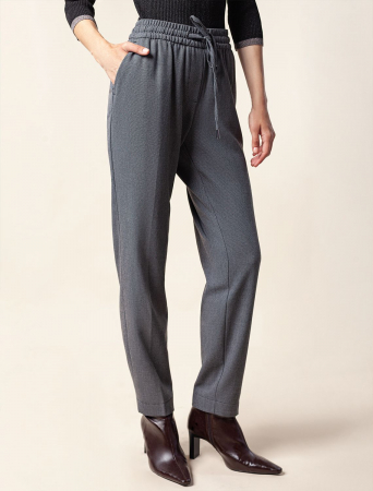Брюки-бананы выполнены из фактурной поливискозы с добавлением нити эластана. Материал хорошо пропускает воздух, поэтому в изделии не будет жарко даже в отопительный сезон. Комфортная посадка на талии с поясом из эластичной резинки с дополнительными шнурками, позволяют фиксировать модель без ремня. Изделие со стрелками и двумя боковыми карманами, одним карманом в листочку сзади. Брюки-бананы отлично подходят обладательницам фигуры песочные часы, а также женщинам с узкими бедрами помогут уравновесить пропорции.