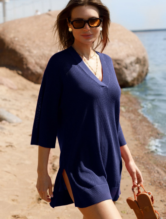 Туника полупрозрачной вязки выполнена из мягкой пряжи на основе хлопка с вискозой. Идеально подойдет в жару, защитит от палящего солнца и при этом не будет перегревать тело. Отлично сочетается с мини-топом или с купальником. В обычной жизни хорошо аккомпанирует с денимом и льном. Изделие дополнено металлическим логотипом бренда.