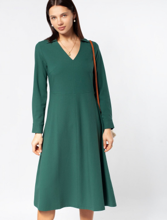 Платье приталенного силуэта и воротником-поло. Выполнено из эластичного крепа. Универсальная модель и трендовый крой в стиле 70-х годов, выгодная инвестиция для повседневного образа, деловой встречи или вечернего выхода. Можно носить с поясом, чтобы дополнительно подчеркнуть талию и А-силуэт.