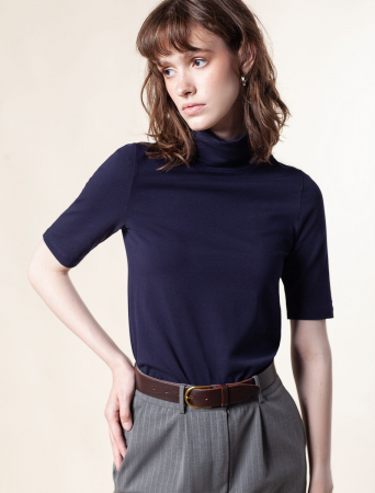 Базовая синяя водолазка с коротким рукавом выполнена из премиального хлопка с добавлением эластичных волокон. Гладкий трикотаж обеспечит гарантированный комфорт и удобство в использовании. На рукаве изделия металлическая нашивка с логотипом бренда. Совет стилиста: водолазку с коротким удобно сочетать с жакетом или блузкой. Также как самостоятельный верх к широким брюкам.