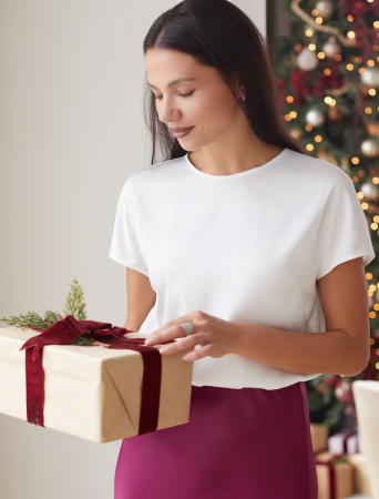 Стильная блузка натурального белого цвета из сатина с удобной застежкой на пуговицу на спинке. Прямой крой и короткий рукав делают модель универсальной для любого сезона. Благородный блеск ткани подчеркивает элегантность, а удобная посадка обеспечивает комфорт. Благодаря эластану в составе ткань сохраняет первозданный вид, не образуя заломов. Ваш образ будет безупречен весь день! Блузка легко комбинируется с деловой одеждой и casual-вещами, подходит для разных случаев.