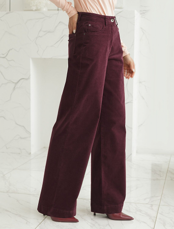 Брюки свободного кроя «трубы» выполнены из мягкого хлопкового микро-вельвета с добавлением эластана. Изделие комфортно садится по фигуре и не сковывает движения. Модель с пятью карманами, как у джинсов дополнена высококачественной фурнитурой с фирменным логотипом бренда. Идеально впишутся в повседневный образ, со свитером крупной вязки, курткой-косухой, ботинками на грубой подошве, челси и казаками.