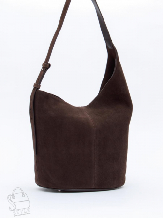 Сумка-мешок с ассиметричным краем, выполнена из замши. Дополнена серебристой фурнитурой. Данная модель закрывается на кнопку. Носится в руке или на плече за встроенную ручку с регулировкой длины. Каркас мягкий. На дне предусмотрены ножки.