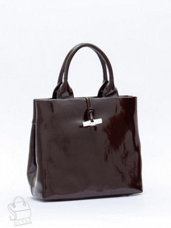 Элегантная модель, выполнена из натуральной лаковой кожи. Дополнена серебристой фурнитурой. Декорирована элементом на корпусе. Данная модель закрывается на молнию. Носится в руке за встроенные ручки. Или на плече за съемный ремнь с регулировкой длины. Каркас полужесткий. На дне предусмотрены ножки.