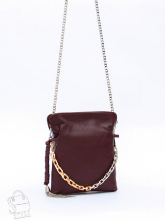Сумка кросс-боди на цепочке, выполнена из натуральной кожи. Дополнена серебристой фурнитурой. Декорирована цепочкой комбинированной и брелоком. Данная модель закрывается на магнитную кнопку, носится на плече за встроенную цепочку с кожаной вставкой. Каркас мягкий.