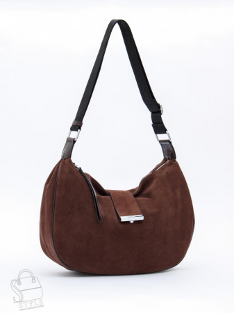 Сумка-хобо, выполнена из замши. Дополнена серебристой фурнитурой. Декорирована хлястиком. Данная модель закрывается на молнию, носится в руке или на плече за встроенный ремень-стропа. Ремень регулируется по длине. Каркас мягкий.
