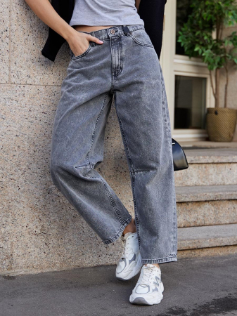 Джинсы Barrel (Бочка) - тренд сезона! Укороченные джинсы модного кроя Barrel с вытачками на коленях создают идеальный объемный силуэт "бочонка" - широкие в бедрах и плавно сужающиеся к низу. Это создает современный и очень стильный геометрический образ. Вытачки в области колена по внутреннему шву не просто являются дизайнерской изюминкой, но и дополнительно подчеркивают требуемый силуэт бочонка и обеспечивают идеальную посадку по ноге, сохраняя форму джинсов при движении. Укороченная длина "анкл" (ankle-length) визуально делает образ легче и современнее и идеально подходит для создания настроения легкой небрежности. Изготовлены из черного денима. Специальная стирка towel wash позволяет получить особый винтажный вид ткани с легким мраморным эффектом. Эта модель - идеальная пара для современных стильных и смелых образов.