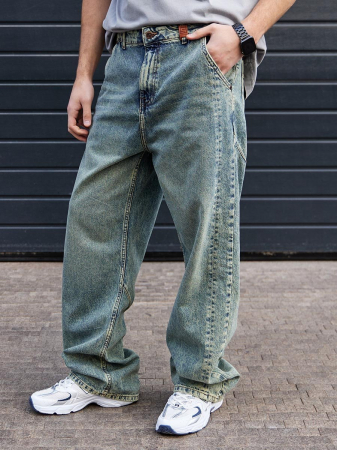 Откройте для себя новый уровень стиля и комфорта с нашими мужскими джинсами Baggy fit с тинтованным эффектом "GET DIRTY", т.е. эффектом запачканных джинсов. Эти джинсы - идеальный выбор для тех, кто ценит свободу и индивидуальность. С их помощью вы легко создадите неповторимый образ, который будет привлекать внимание. Современный дизайн, высокая талия, удобные карманы "хулиганы",широкие штанины по всей длине, спереди дополнительный шов, сзади вытачка. Застежка на молнии. Изготовлены из традиционного денима. Подходят для создания как повседневных, так и более формальных образов.