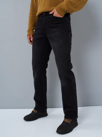 Мужские классические джинсы с пятью карманами. Посадка Regular fit (полуоблегающие по бедру), высокая талия, немного заужены к низу. Застежка на молнии. Выполнены из слабоэластичной утепленной ткани denim comfort stretch, к изнаночной ткани прикреплена дополнительная трикотажная ткань (флис) с мягким, шелковистым и приятным на ощупь ворсом. Темная стирка с потёртостями и спереди и сзади. Параметры указаны для размера 32. Длина шагового шва для роста 32 - 80 см., для роста 34 - 85 см, для роста 36 - 90 см.