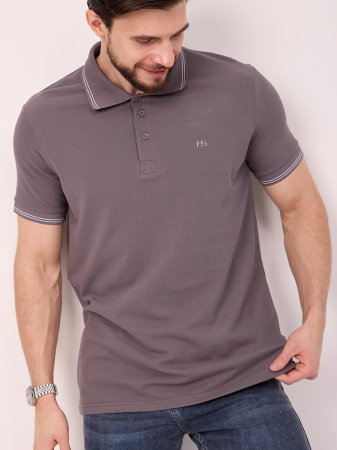 Классическая мужская футболка поло F5, Regular fit (полуприлегающий силуэт), с вышивкой-фирменным логотипом. Выполнена из трикотажного полотна пике (pique). С отложным воротником и короткими рукавами. Застежка-планка обработана пике контрастного цвета, застегивается на 3 пуговицы.