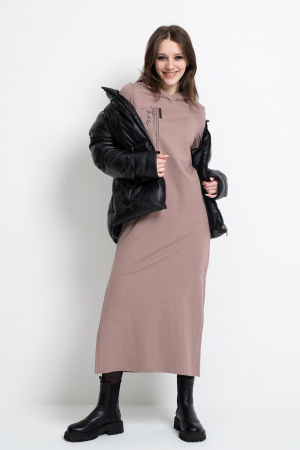 Стильное платье имеет объёмный капюшон, два боковых кармана и длинные разрезы по бокам. Удобное длинное трикотажное платье - беспроигрышное решение для любого случая!