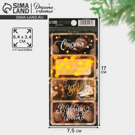 Наклейки новогодние бумажные на подарки «Новый год», 7.5 х 17 см (арт. 9545165)