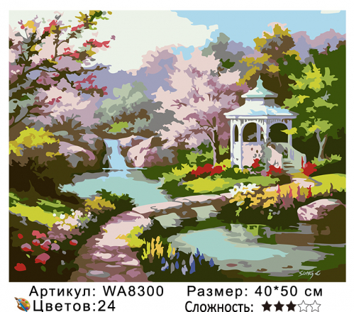 В набор входит: 1) цветной холст на подрамнике с нанесенной пронумерованной схемой будущей картины,