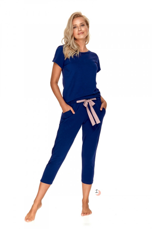 Женская пижама DASZA от европейского производителя Taro. Футболка с коротким рукавом, капри с боковыми карманами и эластичным поясом дополненным бантом.