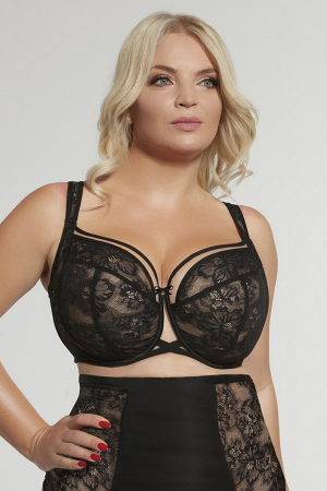 Мягкий бюст на кости с дополнительным боковым подкроем. Чаши выполнены из мягкой кружевной сеточки, очень эластичные. Несъемные регулируемые по длине бретели.