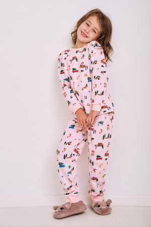 Хлопковая пижама из серии LAURA. Побалуйте себя и свою семью с FAMILY LOOK от европейского производителя Taro! Кофточка и брюки в нежно-розовом цвете украшены новогодним принтом. Штанины и рукава на изделии заканчиваются манжетами.