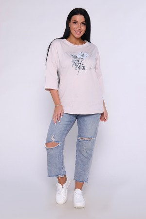 Туника из натурального хлопка прекрасный вариант для повседневного образа. Оригинальный принт с использованием глиттера украшает модель, придавая ей изысканный вид. Обработка деталей вкруговую с закрепкой, рукав длиной 3/4, горловина втачная из основной ткани. Большие размеры.