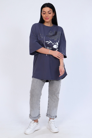 Туника женская выполнена из кулирки с лайкрой в шести цветах. Модель свободного кроя, округлый вырез горловины, спущенный рукав 3/4, слегка расклешен к низу. Оригинальный принт придает изделию индивидуальность. Стильная туника создаст модный и женственный образ на каждый день, скроет недостатки и подчеркнет достоинства фигуры.