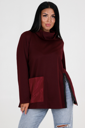 Туника свободного кроя. Рукав длинный. Ворот-хомут. На полочке снизу разрез на декоративной молнии. Нашивной карман.